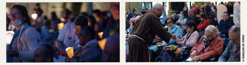 Chaque année, le pèlerinage franciscain de Lourdes a lieu lors de la semaine de l’Ascension. C’est un temps de fraternité et de convivialité, mais aussi de solidarité puisque nous accueillons des malades et des personnes handicapée, et enfin de prière et d’intériorité. De nombreux petits miracles s’y produisent chaque jour ; ils sont souvent invisibles puisqu’ils touchent le cœur, mais ils transforment durablement des personnes