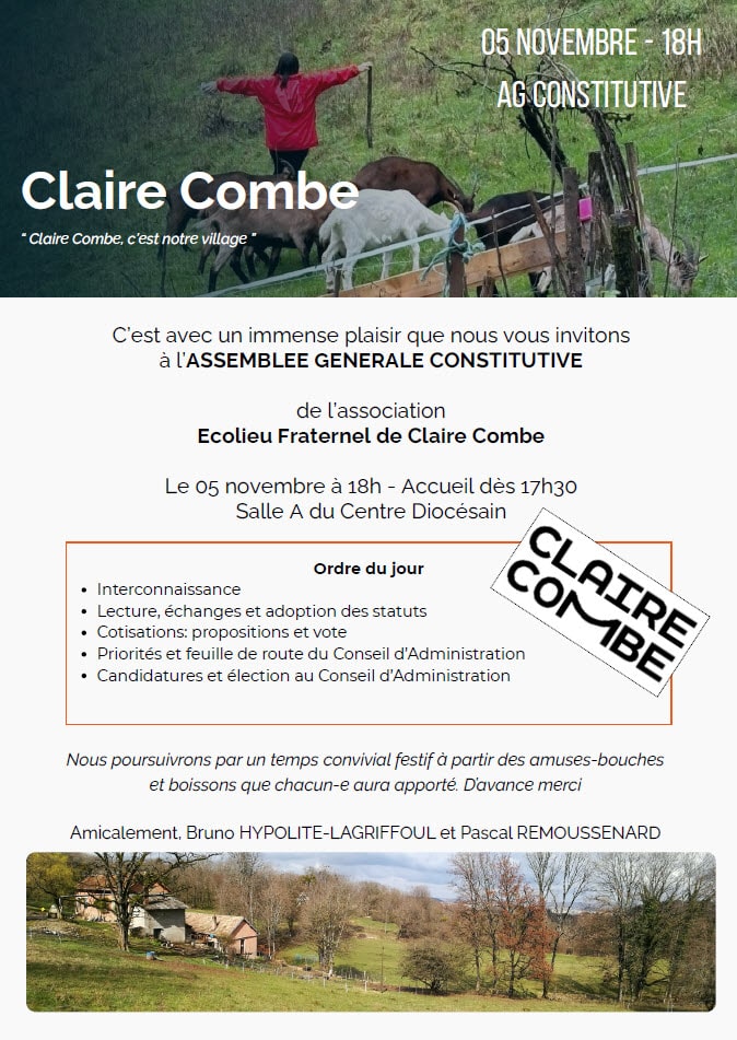 Le projet est ambitieux et nécessite des forces vives. Les fraternités franciscaines séculières désirant mettre en pratique l’écologie intégrale au service des plus défavorisés pourraient soutenir ce lieu chargé d’histoire et animer par leur présence l’aspect fraternel et spirituel de Claire-Combe.
